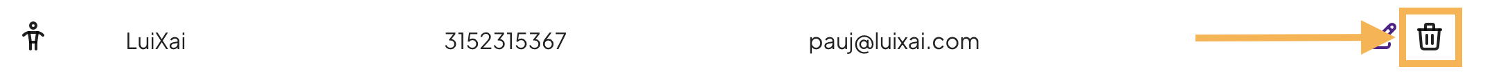 Una vez ubicado el contacto, haz clic en el ícono de papelera que aparece en el extremo derecho del contacto.